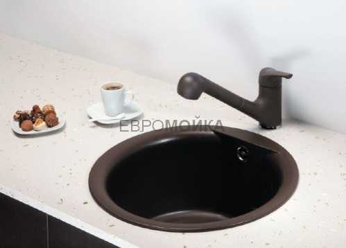 Круглая мойка Schock Euro R 100. Смеситель устанавливается на столешницу.