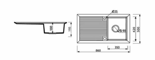 Ну а что ее размеры? Минимальная длина столешницы должна быть 60 см для такой мойки, при этом дополнительная чаша будет небольшая. Минимальная ширина должна быть 80 см.