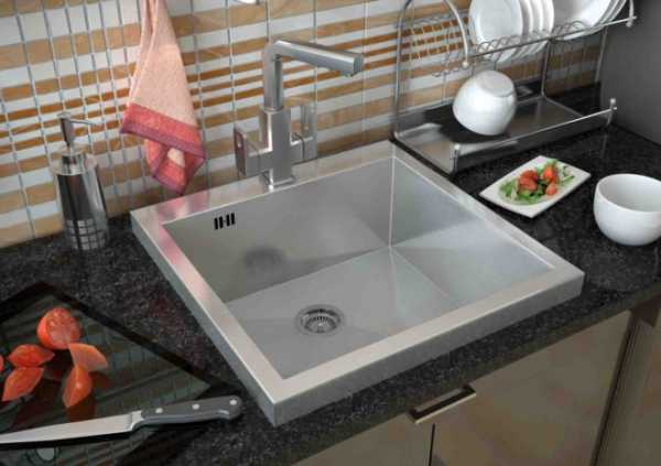 Квадратные и прямоугольные модели представлены среди накладных изделий. Их размер должен быть чуть больше рабочей тумбы, чтобы быть плотно установленными. Врезные мойки тоже имеют такую форму.