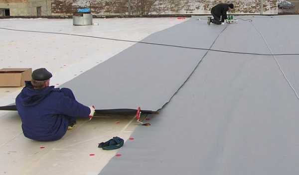 - ТПО-мембраны. Основа — стеклоткань, оболочка — термопластичные олефины. Крепление полотен к основанию крыши производится холодной мастикой, другими клеевыми смесями. А между собой полотна соединяются горячей воздушной сваркой.