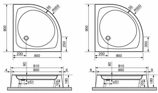 - Размеры душевых поддонов