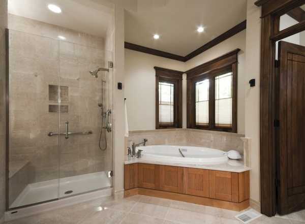 - Большие размеры. Сантехнические приборы этой группы подойдут для крупногабаритных ванных комнат. Минимальная длина бортика составляет 1,2 м. Благодаря крупным габаритам внутри кабины можно расположить дополнительный функционал: телефонную связь, гидромассаж, стул и пр. В них реализуется возможность установки тропического душа или парилки турецкого типа. Располагать душевые кабины больших размеров можно как в центре помещения, так и в нише, углу.