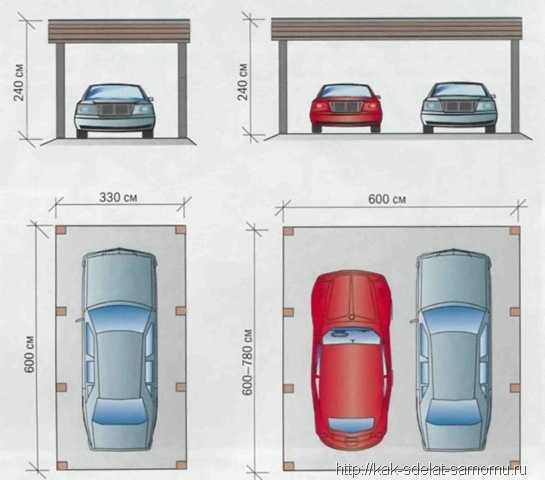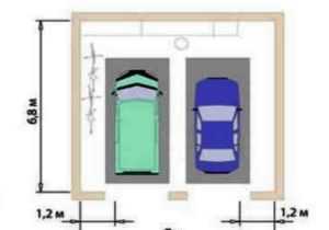 Если по плану в гараже будут храниться минимум 2 авто, то такое строение следует оснастить двойной разновидностью въездного порога. В таком случае въезд следует рассчитывать в зависимости от разновидности транспортного средства, но по стандартной схеме. Если же речь идет о ГОСТе, то гараж с двойным выездом должен иметь ворота с шириной минимум в 6 метров.