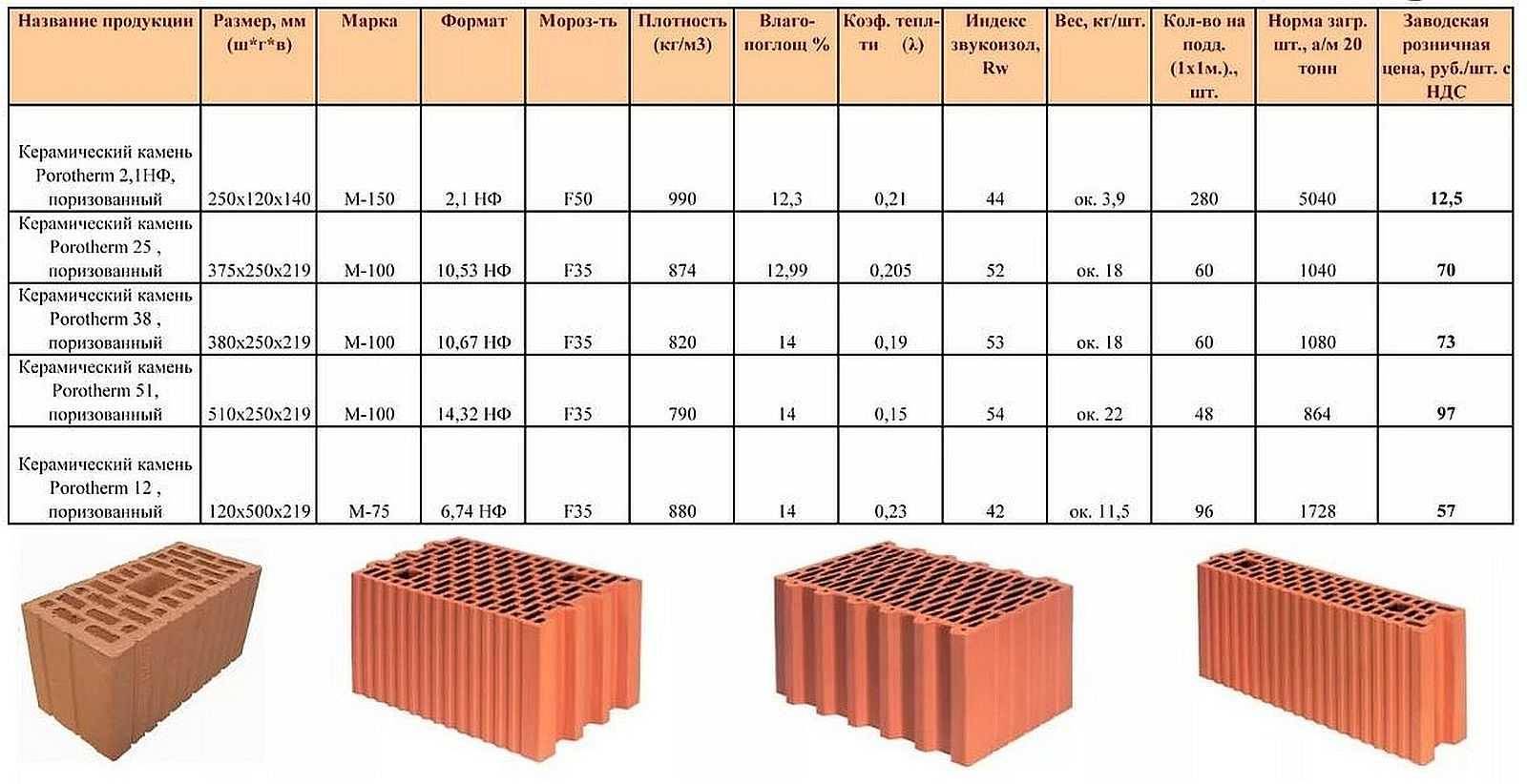 | Костромской силикатный завод | Пустотелый красный | М125 | 250×120×138 | 17 |