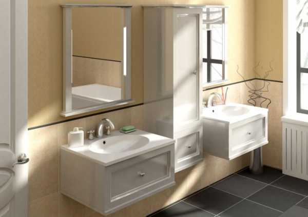 Практически все ванные комнаты – стандартно небольшие по габаритам, поэтому особое внимание стоит уделить функциональности модели. Самые маленькие тумбочки могут быть не более 20х40 см, габаритные варианты достигают 50х12 см.