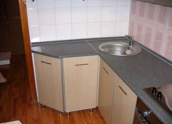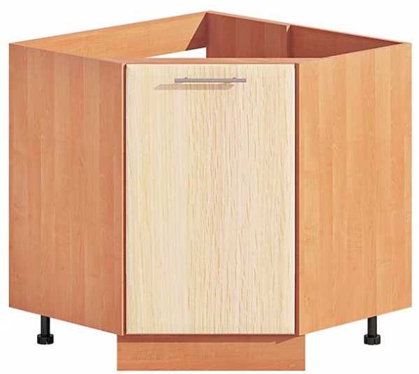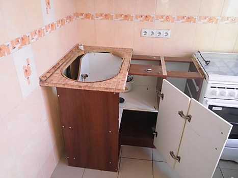 При выборе конкретной модели следует учитывать планировку, размеры и сформировавшийся интерьерный дизайн кухонного помещения. Для кухни квартиры-хрущевки оптимальным вариантом будет угловая тумба, имеющая одностворчатую дверку. Моек для угловой архитектуры корпуса имеется множество. Причем на рынке санитарно-технических изделии модно подобрать как изделия из нержавеющей стали, так и образцы из композитных материалов. Пенал угловой тумбочки обычно имеет одну или две полки. На дверной створке закреплен контейнер или ведро для мусора.