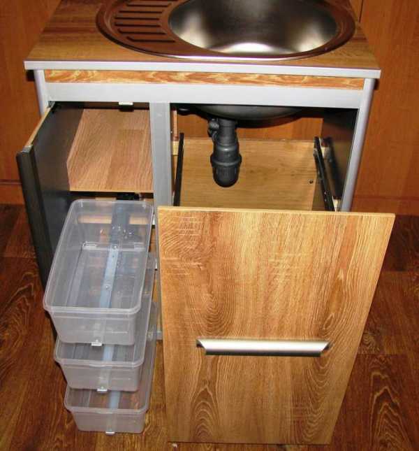 Служат хранилищем. Обычно под столешницей стоит мусорное ведро. Но если позволяет размер, можно засунуть туда несколько выдвижных ящиков и полок.