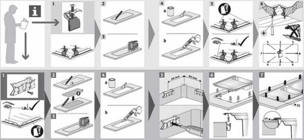 Установка тумбы осуществляется после монтажа и подключения самой раковины. Выполняется фиксация дюбелями к стене в следующем порядке:
