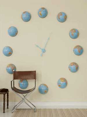 Несмотря на то, что счастливые часов не наблюдают, это ещё не повод отказываться от настенных ходиков. Пусть их будет несколько и на каждых будет своё время, тогда взглянув, вы будете знать, что ваша подруга в Нью-Йорке собирается на работу, а тётя в Париже уже начала готовить ужин или еще не поздно позвонить родственникам в Кемерово.