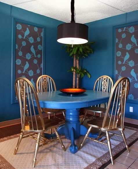 Если же использование шаблона не по душе, можно эффектно расписать стену своими руками. Существуют техники, простые в исполнении, но чрезвычайно эффектно выглядящие в интерьере.