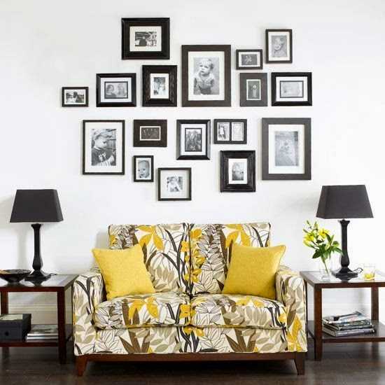 7. Фотографии Такой вариант несомненно станет изюминкой интерьера, оживит его, создаст домашнюю атмосферу и будет напоминать а ваших семейных ценностях. Наиболее эффектно фотографии смотрятся в композиции из нескольких штук разных размеров.