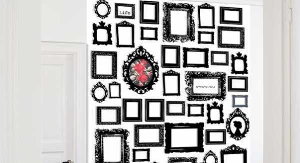 Рамки могут быть не только деревянными, пластиковыми или металлическими, но и просто нарисованными на стене или выполнеными в виде наклеек.