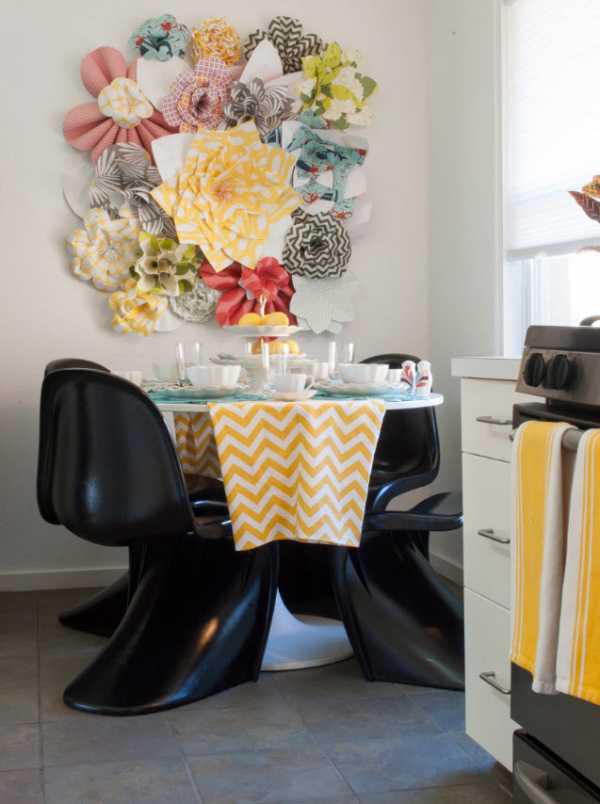 Из всего того, что можно резать ножницами и клеить на стену, человек с творческим подходом способен создать эксклюзивные украшения на стену своими руками, как на фото.