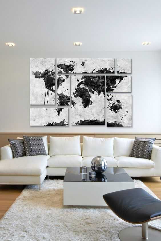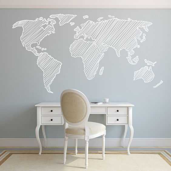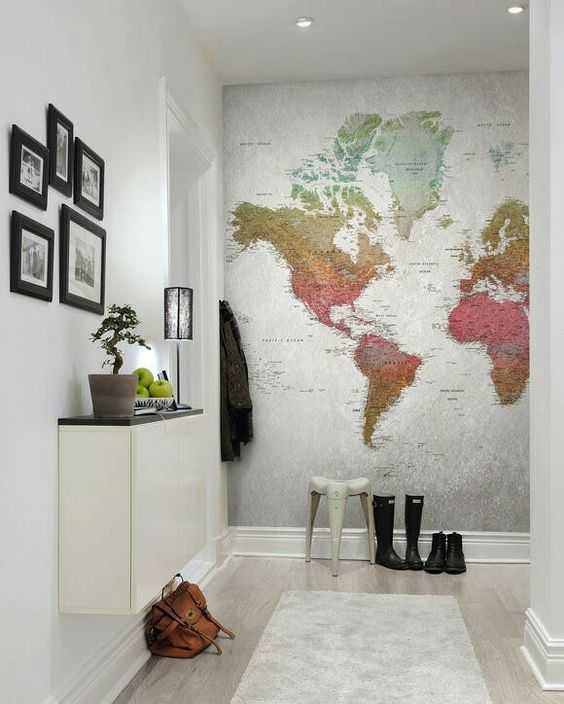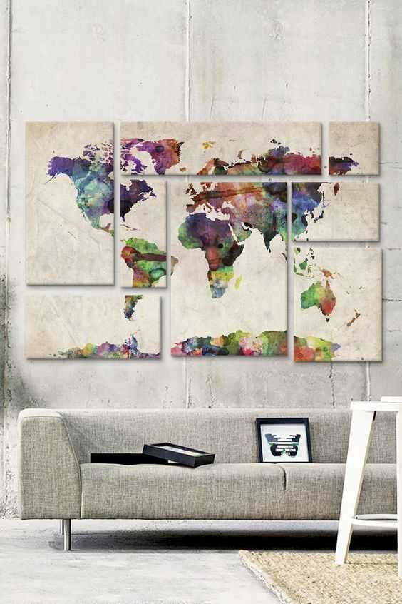 такие картины можно приобрести в магазине Roommy.ru 10. Карта Простой и недорогой способ украсить стену — повесить на нее большую карту или комбинацию из нескольких маленьких, желательно в рамках. Креативно и полезно 🙂