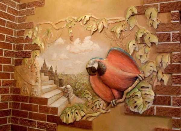 Красиво смотрится и смешанная техника – соединение нескольких приемов, например, декоративная штукатурка, лепка и живопись.