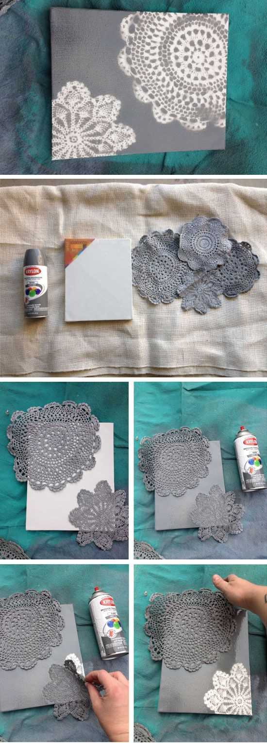 | 1. | Напыление аэрозольной краски по трафарету | Важно подготовить красивый перфорированный узор, работать аккуратно, чтобы не испачкать стены и полы. |