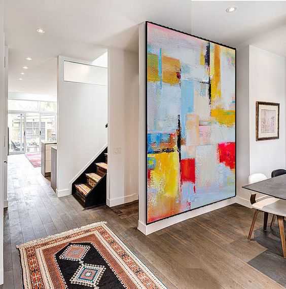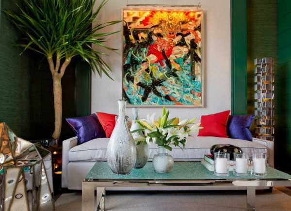 8. Масштабная картина Не слишком оригинально, но от этого не менее эффектный конечный результат. Лучшее место для большой картины или фото — в гостиной над диваном. Если вы находитесь в Питере — посмотрите вот этот вариант.