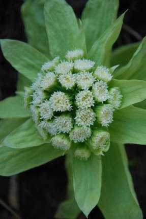 Белокопытник широкий (Petasites amplus) — одна из самых мощных трав, какие только могут расти в наших садах. Даже в средней полосе России лист белокопытника может достигать в поперечнике 70 см, а его черешок метровой длины (высоты). У себя на родине (Сахалин, Приморье, Курильские острова) растение еще крупнее.