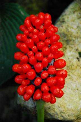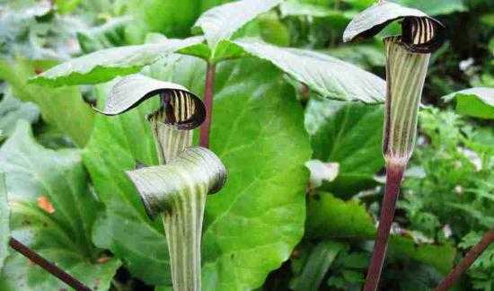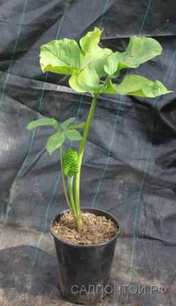 Аризема амурская (Arisaema amurensis). Аризема — родственница аира и каллы. В семействе ароидных, к которому принадлежат эти растения, аризема является одним из крупных родов: на Земле насчитывается примерно 100 видов аризем. Цветок (правильнее — соцветие) ариземы интересен своей необычной формой. Это типичный для ароидных початок, прикрытый вычурной формы покрывалом, похожим на головной убор монахов-капуцинов. Ариземы — одни из самых привлекательных и самых интересных, с точки зрения садоводства открытого грунта, ароидных. Но в основном они — субтропические и тропические жительницы, и перспектива знакомства с русской зимой не сулит им ничего хорошего.