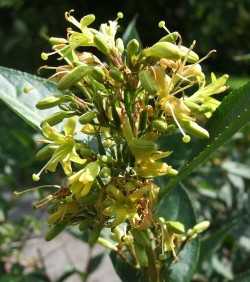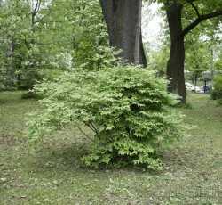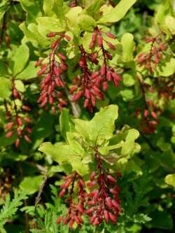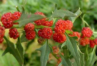 Однако, в течение жизни растения могут содержать только мужские или только женские цветки. Как правило, у молодых растений в соцветиях цветки мужские, а у более зрелых — женские или обоеполые. После цветения, которое начинается в конце мая и продолжается 15 — 20 дней, завязываются круглые плоды. При их созревании в конце августа растение становится еще более декоративным, так как его многочисленные округлые плоды имеют красную блестящую оболочку.