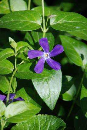 Барвинок большой (Vinca major). Этот вид барвинка встречается в садах россиян намного реже, нежели его меньшой брат барвинок малый (Vinca minor). Между тем он не менее ценен для сада. Цветки у барвинка большого такого же небесно-голубого цвета, но чуть крупнее. Листья имеют сердцевидную форму и приятную темно-зеленую матовость. По зимостойкости большой уступает малому, но, как правило, зимует устойчиво. Если подмерзает, то не чаще чем раз в три года, и быстро восстанавливается. Растение хорошо растет на окультуренных, рыхлых садовых почвах. Предпочитает легкую полутень. Расползается менее активно, чем барвинок малый.