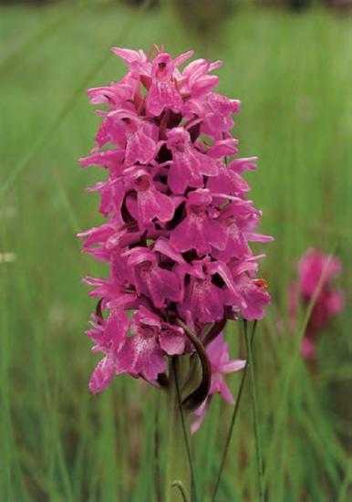 Это один из видов орхидей, которые можно выращивать в умеренном климате на влажных местах или возле садовых водоемов. Из-за формы корней вид получил второе название — пальчатокоренник. Цветки очень интересной формы размером около 2 см, собраны в соцветия. Окраска чаще всего в сиреневых или фиолетовых тонах. Есть виды с белыми и пестрыми цветками.