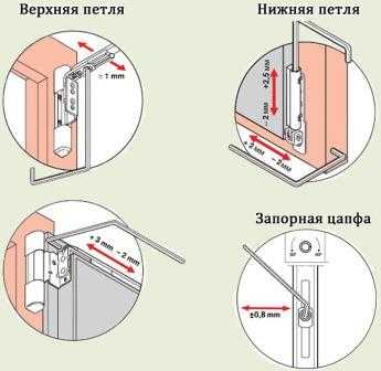 При настраивании цафт, шестигранником прокручиваются эксцентрики. Они помогают в настройке степени соприкосновения рамы и створки. В жару прилегание створок должно быть ослабленным, а в холодный период — усиленным. Винтом в нижней петле, производится настройка степени соприкосновения оконной створки и петель.