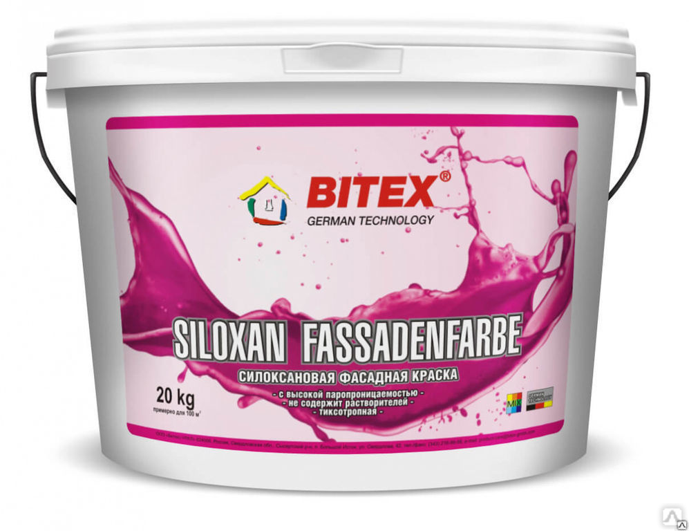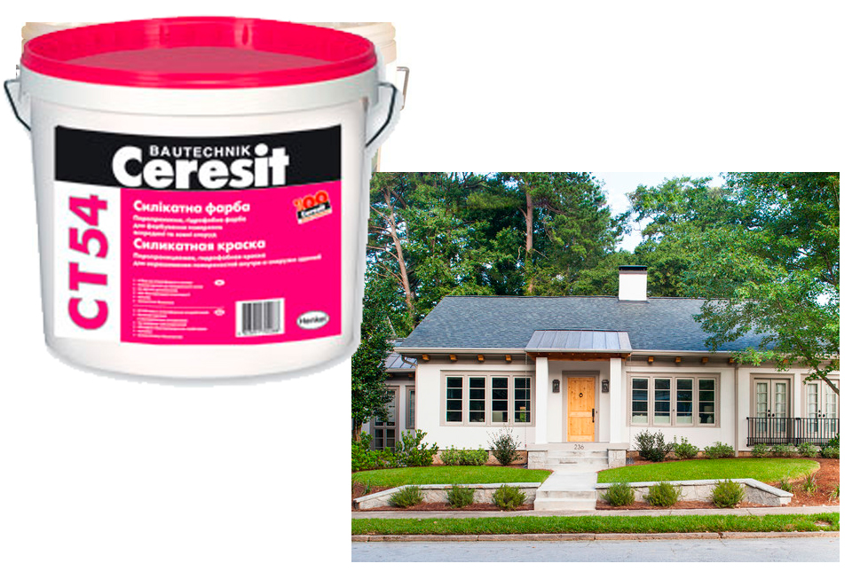 Фасадная краска будет выпускается в двух емкостях по 2.5 и 10 л. Это не мешает использовать краску, которая объединяет в себе положительные качества как силикатных средств, так и вододисперсионных красок. Покрытие «дышит» и отталкивает воду, что позволяет защитить стену от возникновения плесени и грибков.