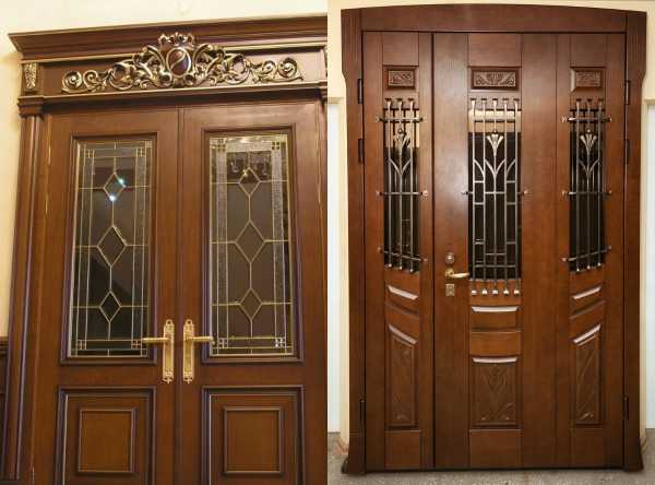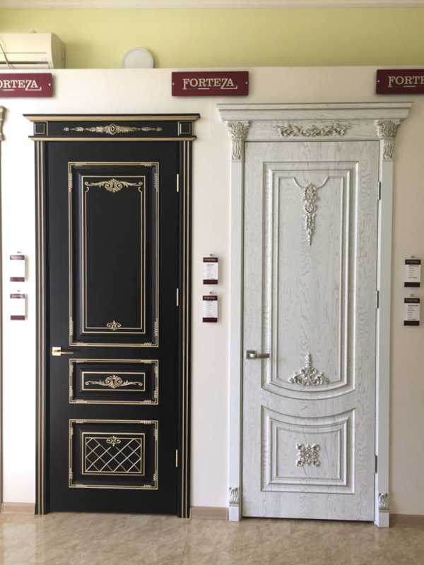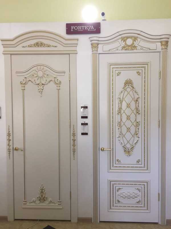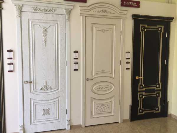 Для классических стилей дизайна подойдут двери с пилястрами и лепкой, а хай-тековский интерьер можно дополнит вариантами из матового закаленного стекла и хромированных деталей.