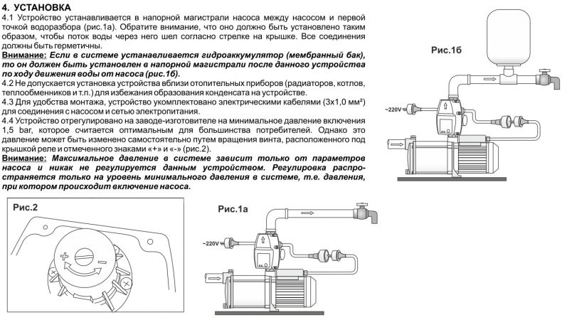 На включениирегулировка реле насосной станции подразумевает следующее.