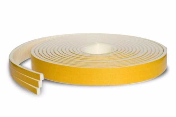 - Самоклеющаяся поролоновая лента — это самое доступное решение для устранения сквозняков и теплопотерь. С одной стороны, на ленте расположен двусторонний скотч которым поролон крепится к раме.