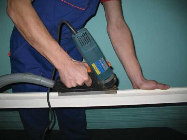 - Используя специальное фрезерное устройство, по всему периметру створки прокладывается паз глубиной 5 мм и шириной 2 мм.