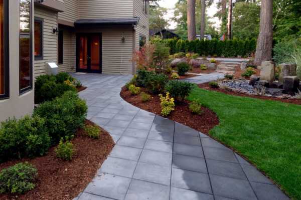 ΠΠ° ΡΠΎΡΠΎ Π»Π°Π½Π΄ΡΠ°ΡΡ ΡΠ°ΡΡΠ½ΠΎΠ³ΠΎ Π΄ΠΎΠΌΠ° Ρ Π΄ΠΎΡΠΎΠΆΠΊΠΎΠΉ, ΠΎΡΠΎΡΠΌΠ»Π΅Π½Π½ΠΎΠΉ ΡΠ΅ΡΠΎΠΉ ΡΡΠΎΡΡΠ°ΡΠ½ΠΎΠΉ ΠΏΠ»ΠΈΡΠΊΠΎΠΉ Π² Π²ΠΈΠ΄Π΅ ΡΠ΅ΡΡΠΈ.