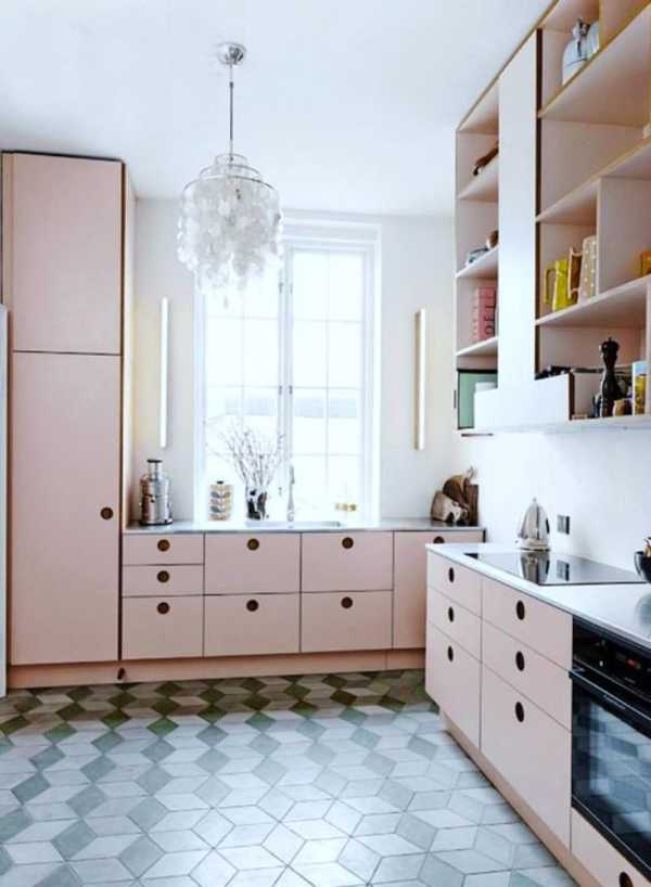 Розовый цвет – распространенный выбор для современных кухонь. Этот мягкий цвет благотворно влияет на повышение аппетита и добавляет ощущения радости и чистоты.