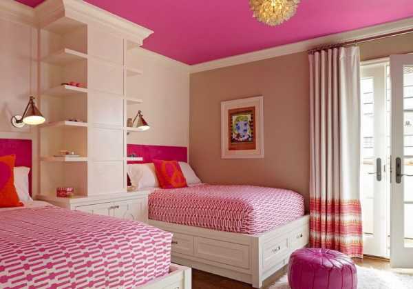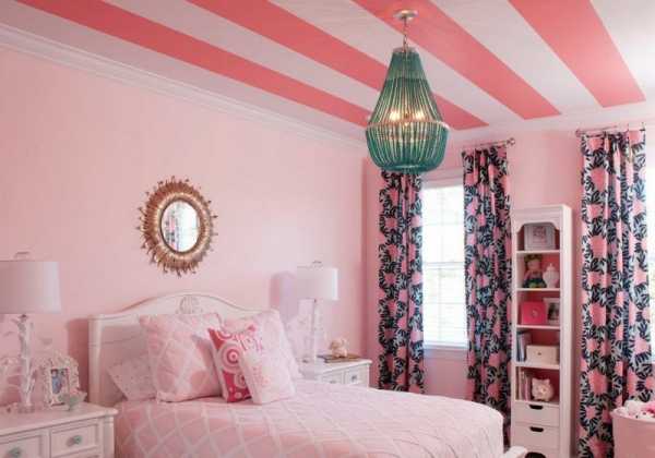 При работе с потолком, а также при оформлении женских и детских спален – розовый цвет может прийтись очень кстати. Его сочетания с вышеуказанными цветами будут смотреться стильно и вовсе не так уж «сладенько», как многие поначалу опасаются.