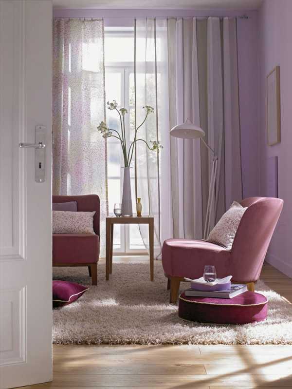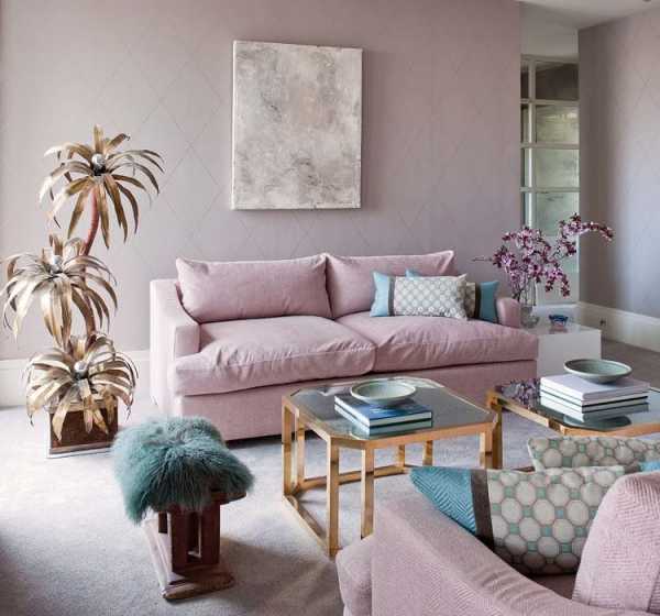 Помимо прочих цветовых совмещений, лавандовый и розовый – просто роскошное сочетание для гостиной! Поскорее берите себе на заметку.