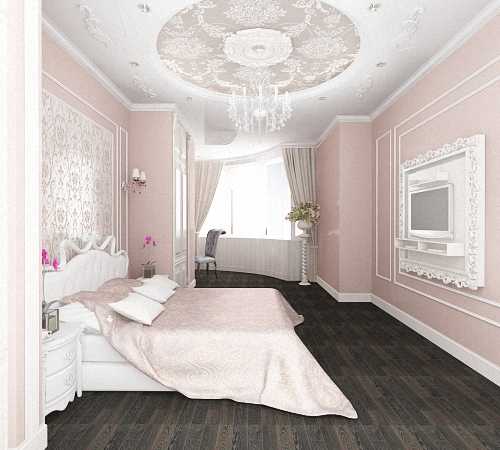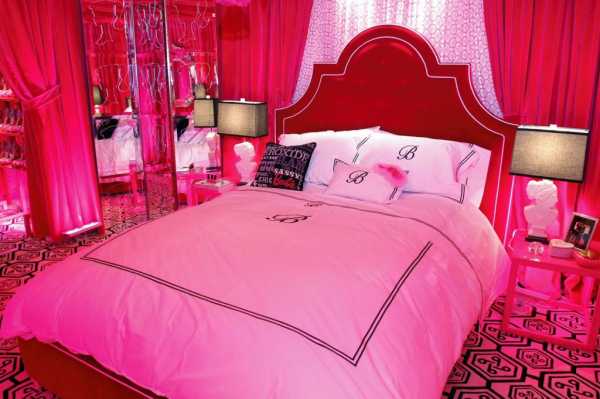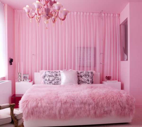 Одним из представителей подобных особенных дизайнов является спальня, отделанная в розовом цвете.