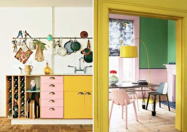 Если разбавить сочетание цветов розовым цветом в интерьере – полученные результаты могут нас по-хорошему удивить. Например, совмещение с пастельными оттенками привнесет солнечное, летнее настроение. Это идеальная вариация для детской или столовой. А вот глубокие красно-желтые цвета затемняют и визуально «сжимают» помещение. Избежать указанных крайностей помогут сочетания розового с персиковым или оранжевым.