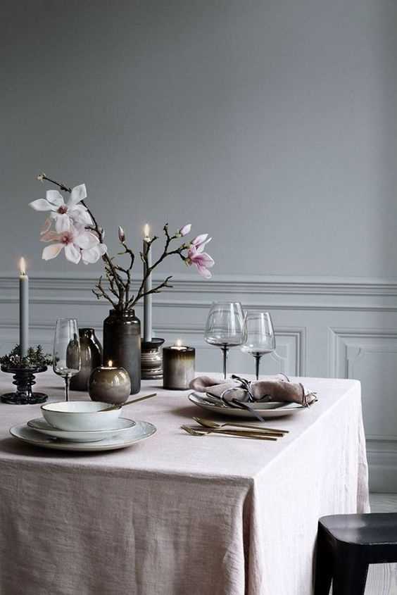 И получите более сдержанный, элегантный вариант, если возьмете за основу, например, жемчужно-серый и добавите розовые акценты, т.е. ограничитесь двумя цветами — розовым и сдержанным нейтральным.