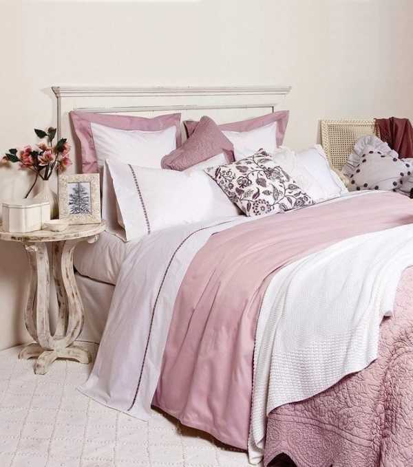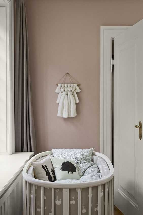 Сочетание пыльно-розового и тёплых оттенков белого — лучший выбор для спален и детских.