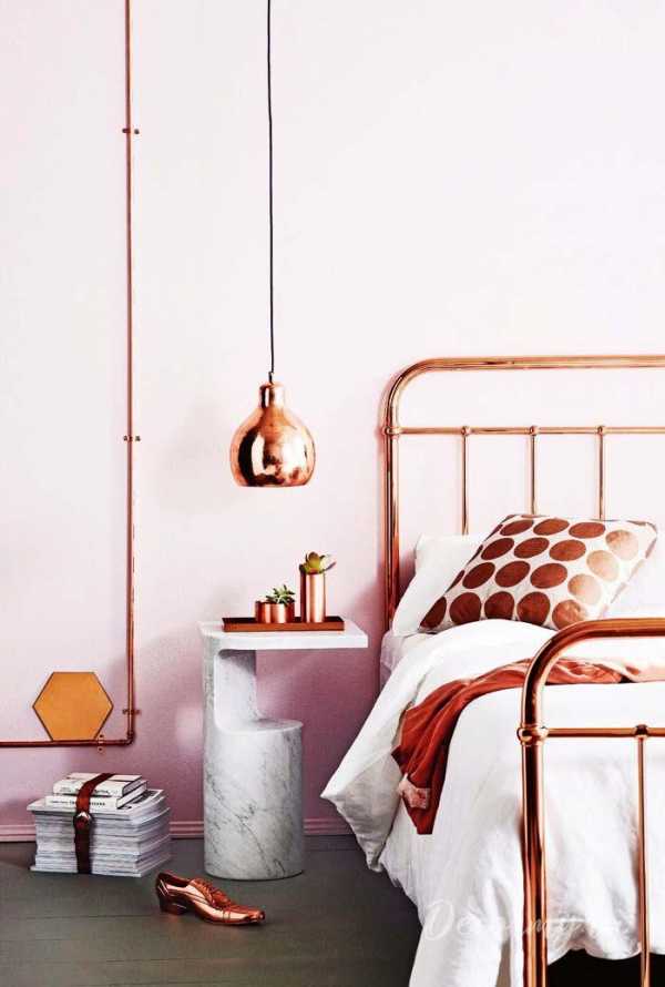Цвет «Розовое золото» в интерьере станет ноткой шика и неординарности, особенно хорошо будет смотреться на люстрах, торшерах, вазах и рамах зеркал или картин.