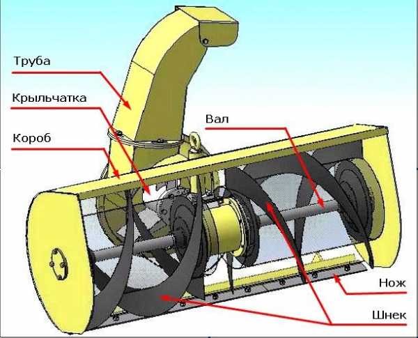Давайте рассмотрим из чего состоит снегоуборщик.