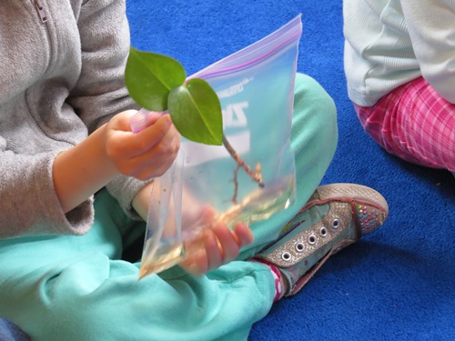 Перед тем, как отправиться в экскурсию, я хотел, чтобы дети думали и говорили о растениях.Я принес простое растение, которое я вытащил из одной из своих плантаторов дома, и бросил его в пакет с водой. Когда дети передавали растение по кругу, мы говорили о листе, стебле и корнях…