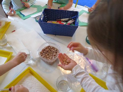 Чтобы посадить фасоль, дети пипеткой намочили бумажные полотенца водой…