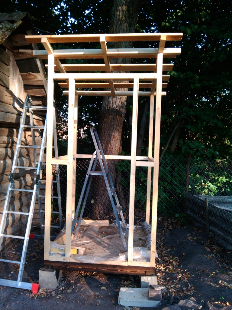 Делаем обшивку каркаса туалетного домика
