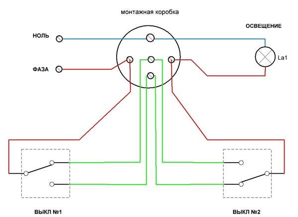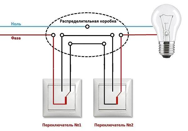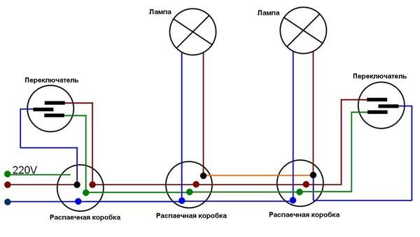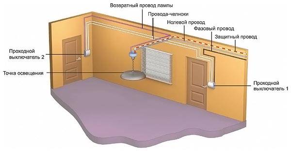 Схема подключения проходного выключателя с двух мест