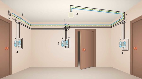 Эффективная схема подключения проходного выключателя из двух мест