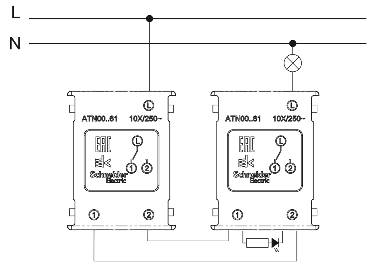 Двухпроводной управляющий двухпозиционный переключательЭта конфигурация аналогична вентилю EX-NOR в цифровой электронике.