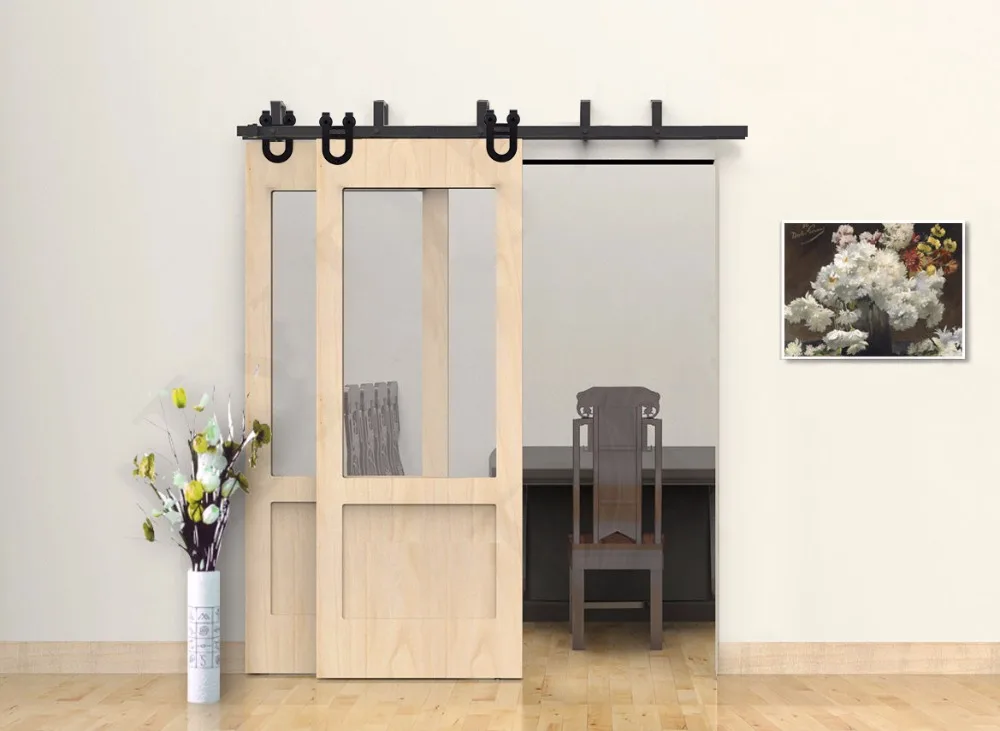 ,LWZH Кантри в стиле кантри Дверная обводная система для раздвижных дверей Черные стальные опорные ролики для внутренней двойной двери