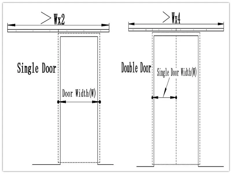 Одна дверь: Длина скользящей рейки> Ширина двери * 2